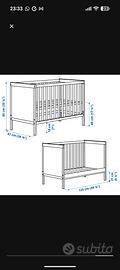 Vendo culla con materasso, 2 proteggi materasso, 4 lenzuola con angoli e paracolpi. Si può usare sia come culla e poi lettino. Misure in foto. Ottime condizione, vedi foto per unico difetto. Solo ritiro a mano, no spedizione.