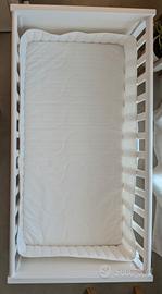 Vendo culla con materasso, 2 proteggi materasso, 4 lenzuola con angoli e paracolpi. Si può usare sia come culla e poi lettino. Misure in foto. Ottime condizione, vedi foto per unico difetto. Solo ritiro a mano, no spedizione.