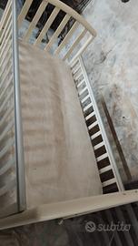 culla in legno verniciata bianca, abbastanza usata ma con una rapida verniciata ritorna in Ottimo stato, compresa di materasso