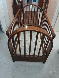 Culla per bambini in legno massiccio colore noce. Misura max per materassi 125x65