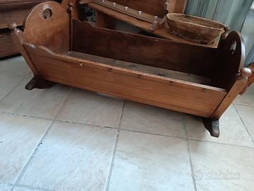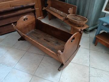 culla tirolese antica noce massiccio fine 700 primo 800 restaurata a regola d'arte