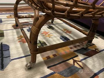 Splendida culla vintage di alta qualità, realizzata interamente a mano con tecniche artigianali. La struttura è solida, composta da intrecci di vimini e bambù naturale che le conferiscono un fascino senza tempo, perfetto per arredamenti in stile boho-chic, retrò o naturale. Caratteristiche principali: • Design Unico: Struttura a nido con ampie maglie intrecciate e dettagli curati. • Supporto Velo: Inclusa l'asta curva superiore per appendere una zanzariera, un velo decorativo o giostrine. • Mobilità: Dotata di quattro ruote piroettanti originali (funzionanti) per spostarla facilmente tra le stanze senza fatica. • Stato di conservazione: Ottime condizioni vintage. La struttura è integra e il materiale conserva la sua naturale lucentezza. Dimensioni: • Lunghezza: 111 cm • Larghezza: 64 cm • Altezza: 84 cm (struttura culla) Ideale non solo come culla per i primi mesi, ma anche come ricercato elemento d'arredo per servizi fotografici o come cesto porta-giochi/biancheria una volta terminato l'utilizzo primario. Disponible per ritiro a mano date le dimensioni.