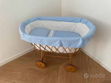 Culla vintage inutilizzata Completa di set lenzuolo,sacco copri piumino e cuscino. In origine aveva pizzi per coprire tutto il bordo (disponibili)