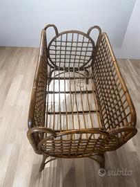 Splendida culla vintage originale degli anni '60, realizzata interamente a mano in rattan e bambù. Un pezzo autentico di manifattura artigianale, perfetto per chi ama lo stile Boho-Chic o il modernariato italiano.