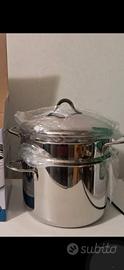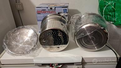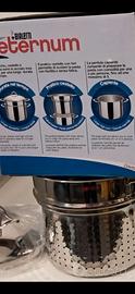 Vendo tegame in acciaio inox 18/10 cuoci e scola pasta con coperchio 3 in 1 Bialetti Aeternum capacità 6 Litri. Mai usata, ancora con cellophane .