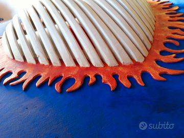 L'opera può decorare una parete come quadro o fungere da lampada ornamentale.