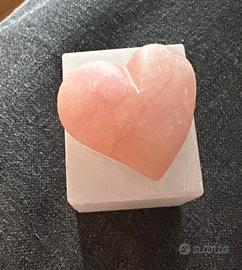 Base in alabastro bianco e cuore retroilluminato rosso rosa