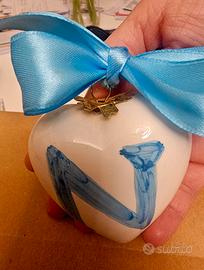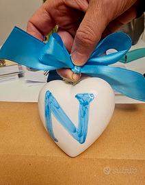 Bellissimo cuore in ceramica di Vietri, decorato a mano con l'iniziale N in blu del Napoli Calcio. Decorazione artigianale. Smalto lucido. Perfetto come idea regalo. Gadget originale della propria squadra del cuore. Un omaggio di Vietri alla squadra Campione d'Italia.