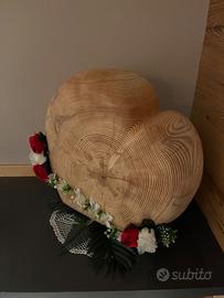 Cuore in legno di abete secolare levigato con decorazioni floreali Dimensioni 45x45x18cm