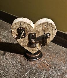 Simpatici e dolci Cuori di Legno realizzati con assi di vecchio Larice e completati con decorazioni metalliche che li rendono rustici e unici. Su richiesta è possibile praticare una fessura nella parte superiore per utilizzare il cuore come porta foto. E' anche possibile personalizzare i cuori con scritte al laser: chiedeteci info! Dimensioni in Centimetri: Cuore: 15×14 Spessore Legno: 3 Disponibile su ordinazione, tempo di realizzazione 3 settimane