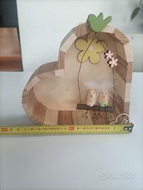 Cuore in legno cm 16 con coppia ovetti pasquali in altalena