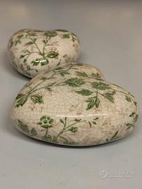 Coppia di Cuori in Ceramica Craquelé – Shabby Chic 🌿