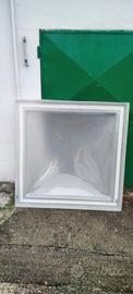 cupola in policarbonato parete doppia, colorazione opale , dimensione 120 x 120 , esterno misura appoggi 133x133. con telaio in ferro apribile a libro , con . supporti . Ritirabile sul posto.
