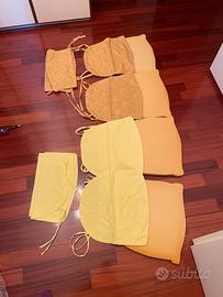 Cuscini, copri cuscini, copri tavolo Vendo imbottitura di n.4 cuscini, 4 fodere gialle canarino, 4 fodere giallo ocra. Copri tavolo 140x160 giallo canarino Prezzo 45 euro