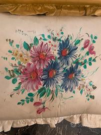 2 coppie di cuscini in raso, dipinti a mano. Molto d’effetto