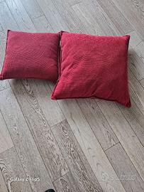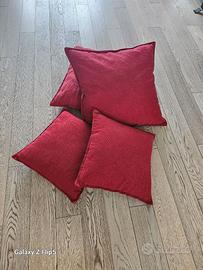 Quattro cuscini da divano di ciniglia rossa in due misure, 45x45 e 60x60 in ottimo stato marca Maisons du Monde.