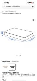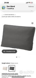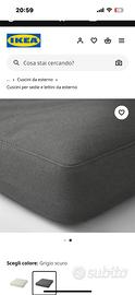 Vendo cuscini da esterno ikea. Usati una sola stagione, praticamente nuovi. 3 sedute 62x62 5 sedute 124x62 15 schienali Preferibilmente in blocco.