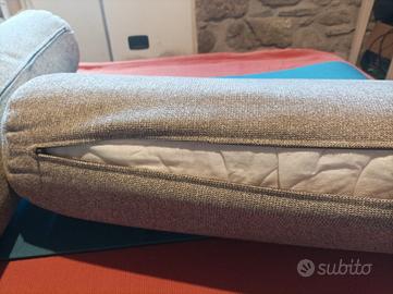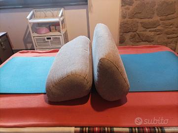 Due cuscini da salotto con copri cuscini estraibili e lavabili. Sono di un divano che è stato dismesso. Sezione triangolare (vedi foto). Misure: lunghezza 80 cm; altezza 34 cm; larghezza alla base 20 cm (verso l'alto si stringono).