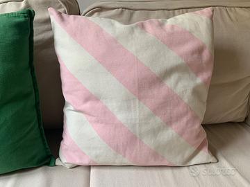Cuscino e fodera per cuscino in cotone per divano o letto. Uno verde e uno a righe rosa e bianco. Possono essere venduti separatamente.