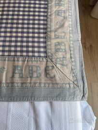 Tre cuscini di cotone blu cm 59 X59 due tovaglie una di fiandra di cotone bianca cm 122X 150 e una di cotone a quadretti bianca e blu 94 X94 più altri ciscini di varie misure per in totale di 9 cuscini.