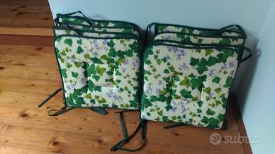 Vendo 2 cuscini nuovi grandi per poltrone da esterno e 8 cuscini sempre nuovi per sedia, con bella fantasia