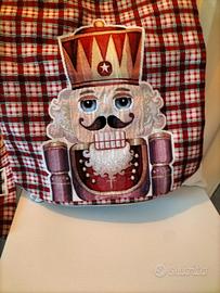 Coppia di federe per cuscini Natalizi. 42x42 cm Soggetti: Schiaccianoci Tessuto lurex : effetto luccicante Prodotto italiano.