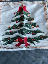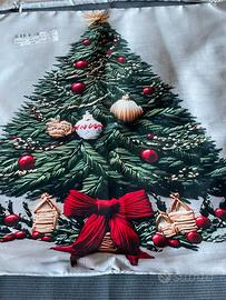 Copricuscino natalizi con soggetto albero di Natale, stampa laser su tessuto morbido poliestere. Dimensioni cm 40 x 40, nuovi con cartellino.