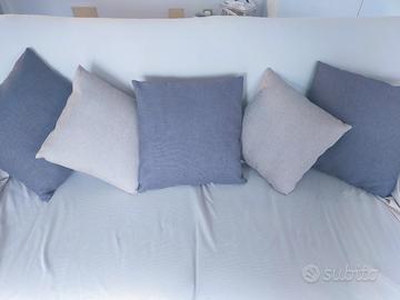 5 cuscini nuovissimi,2 colore beige 3 colore grigio,le misure dei beige sono 35 per 35.le misure dei grigi sono 40 per 40.Li vendo anche separatamente.Il prezzo è trattabile.