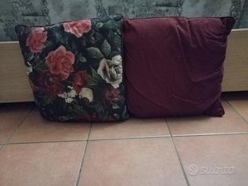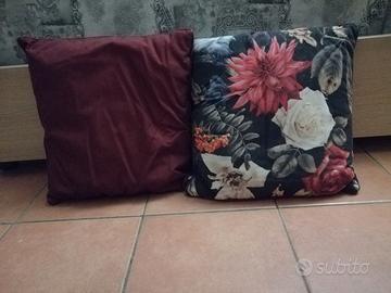 Cuscini per divano, dimensioni 40X40 cm,sfoderabili. Colore bordeaux e motivo floreale con sfondo nero. Vendo a coppia per inutilizzo