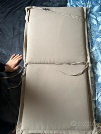 Quattro cuscini in perfette condizioni, mai utilizzati con misura 102 cm altezza e 53 cm profondità, perfette per sedie da esterno. Colore bianco e beige. In vendita a 15 l’uno 45€ per tutti e quattro. Marchio Spirit. Tessuto per esterno idrorepellente e sfoderabili
