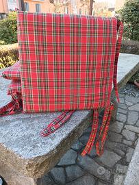 Vendo 4 cuscini per sedie motivo scozzese con filo dorato cuciti a mano (usati pochissimo).Misura 40 x 40. Vendo causa trasloco.