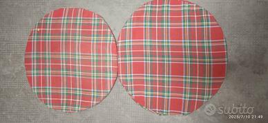 vendo n.4 cuscini per sedie 2 quadrati e 2 rotondi hanno qualche piccolo difetto 2 rotondi hanno 1 piccolo buchino ma pur sempre in buone condizioni e 2 sempre rotondi aperti sulla cucitura del cuscino ma comunque a parte i piccoli difetti sono in buone condizioni misure cuscini rotondi cm 40x40 misure cuscini quadrati lunghezza cm 50 larghezza cm 45 x chi fosse interessato all' acquisto si effettua prezzo interessante