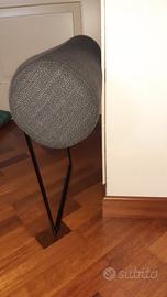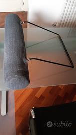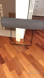 1 Poggiatesta mai usato, in tessuto di colore grigio, il diametro del cuscino è di 13.5 cm, lunghezza cuscino 70 cm, larghezza tra paletti di sostegno laterali 44 cm, distanza dal paletto di base e inizio cuscino 40 cm. Visto l'ingombro non è prevista la spedizione ma solo consegna a mano.