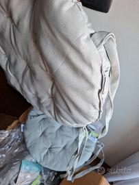 Vendo in blocco 7 cuscini tondi idrorepellenti, nuovi, grigio chiaro, qualità eccellente, materiale resistente, imbottitura spessa e di grande sostegno.