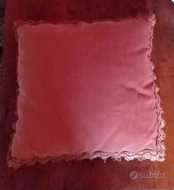 vendo 3 cuscini di velluto color salmone, con imbottitura. misure 38× 38 cm Passamaneria color oro antico. 4 € x ogni cuscino 10 x tutti e tre