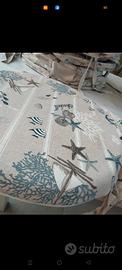 8 cuscini per sedia rifiniti artigianalmente rotondi diametro 41,5 cm bordo altezza 8,5 cm a tema marino colore beige blu panna