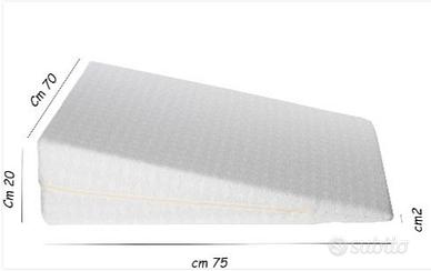 Resingomm Cuscino in poliuretano espanso high density certifIcato Oeko Tex. Nessun intermediario, prodotto di fabbrica Resingomm , misure perfette per distribuire peso e favorire il corretto riposo per chi soffre di reflusso. Utilizzo : sotto o sopra il materasso dalla parte della testa . Uso principale per reflusso gastrico. Fodera in tessuto OEKO TEX misto cotone e aloe vera, sfoderabile e Lavabile a 40 gradi. Misura : L70cm P75cm h20cm