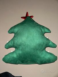Decorazione perfetta per le feste! Morbido cuscino in velluto verde con dettagli rossi e bianchi, a forma di albero di Natale, completo di una simpatica stellina rossa sulla punta. Ideale per divani, letti o come elemento decorativo. In ottime condizioni, usato pochissimo.