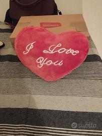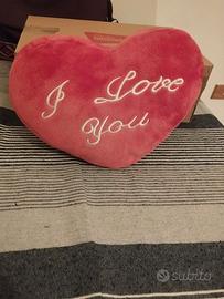 Vendo cuscino a forma di cuore con scritta "Ti amo!" "I love you!" Cuscino in tessuto morbido e peloso colore rosso, perfetto per coppie di innamorati o come regalo ad un fidanzato/fidanzata. Il cuscino è in ottime condizioni, perfetto e morbido. Ideale per san Valentino. Misure: 27x21 cm. Sconti attivi sui set! Per la zona di consegna ci organizziamo (Roma) o posso spedire.