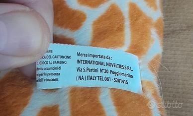 Cuscino a tema giraffa con un peluche della faccia di giraffa sul fronte. Misure 34x36 centimetri.
