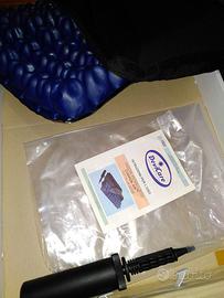 Prodotto Devicare come da foto scatola e etichetta. Cuscino antidecubito in PVC, dotato di micro-bolle d’aria e valvola, garantisce una distribuzione uniforme del peso, riducendo la pressione e contribuendo a prevenire le piaghe da decubito. Fodera lavabile. Comprende pompetta. Usato poco, ben conservato.