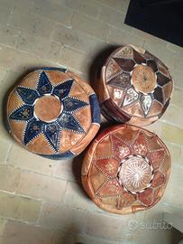 4 cuscini in vera pelle.Come si vede da una foto,sono fatti a mano. Originali,mai usati ma alcuni da riempire. 35 Euro uno. Tutti e quattro 120. Consegna a mano