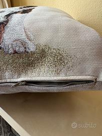 Cuscino arredo 45x45 in pregiato cotone con immagine cane.Cucito interamente a mano, sfoderabile.