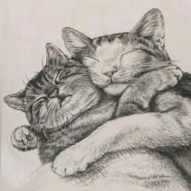 La stampa, eseguita su un lato solo del cuscino, raffigura due mici (o forse un micio e una micia?) teneramente abbracciati.