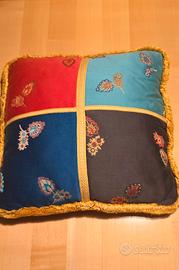 Cuscino d'arredo doppia faccia di tappezzeria pregiata con frangia e passamaneria dimensioni cm 45 x 45