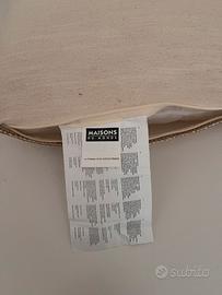Cuscino beige con bordino dorato 40x40 cm. Nuovo. Maison du Monde.