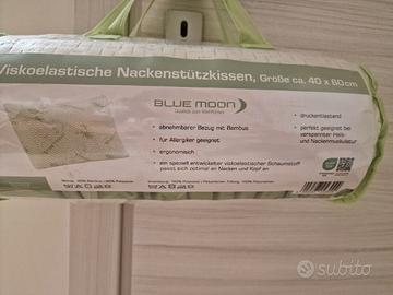 cuscino viscoelastico di supporto per il collo della marca "BLUE MOON", con dimensioni di circa 40 x 60 cm.