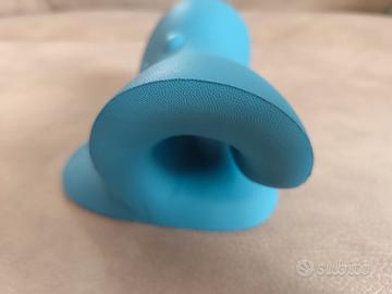 Cuscino cervicale rigido di colore blu, progettato per offrire supporto. - Forma ergonomica. - Superficie con piccoli rilievi. - Materiale rigido.
