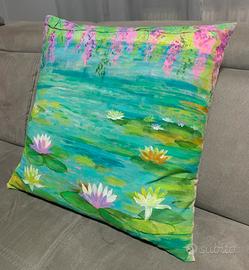 Vendo cuscino interamente dipinto a mano con colori appositi per tessuti, resistente ai lavaggi.