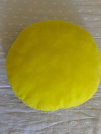 Cuscino rotondo imbottito - diametro cm 38 - raffigura emoticon risata - colore di base giallo canarino